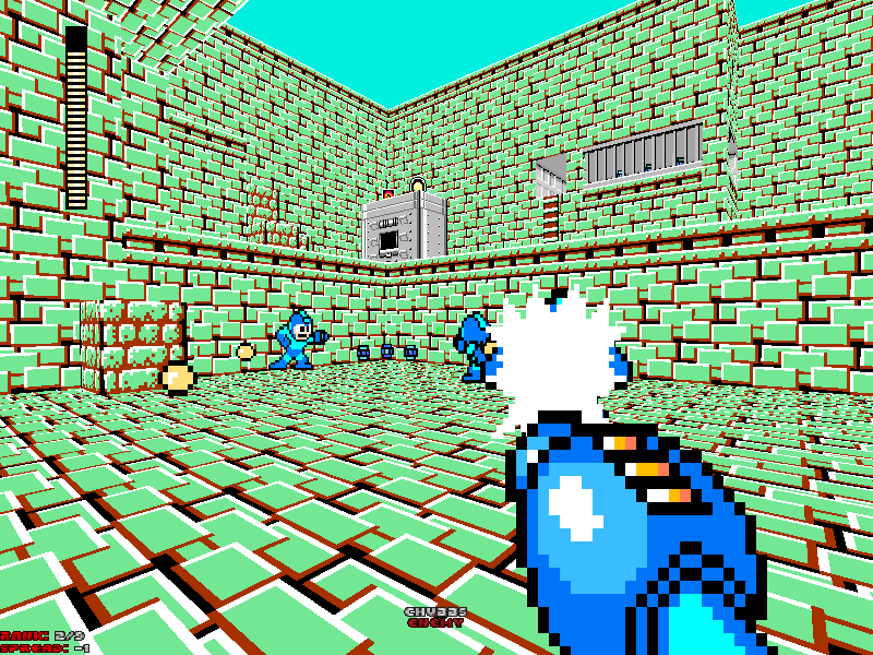 “Megaman 8-bit Deathmatch will play as if Megaman suddenly turned 3D. Everything will play as if it was being played back in 1987. Levels will use purely 8-bit textures and sprites. Megaman will jump high and take damage recoil. Weapons will behave exactly as they did back then, only from a 3d perspective. The plan is to eventually have all the levels and weapons from Megaman 1-6 (and maybe 9). Obviously some weapons will have minor changes because there are a lot of clones throughout the series.”