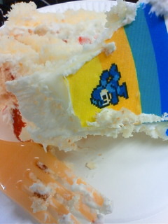Ariga’s slice of Mega Man birthday cake, as seen on the Spiceman blog.