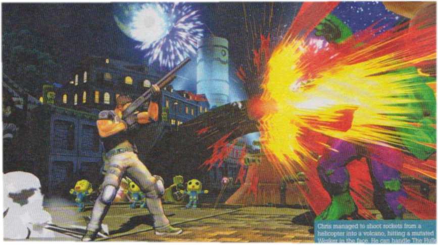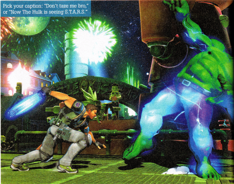 Your eyes do not deceive you; while the Incredible Chris Redfield takes on the Hulkster, there are Servbots doing… well, various Servbot things in the background.