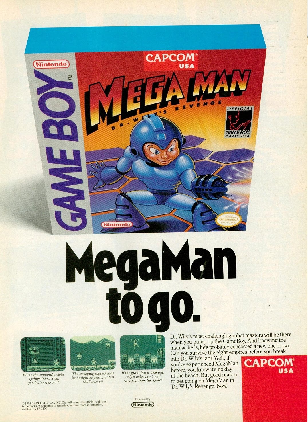 Courtesy of Retro Gaming Life comes the following magazine advertisement for the Blue Bomber’s first on-the-go Game Boy adventure, Mega Man: Dr. Wily’s Revenge: