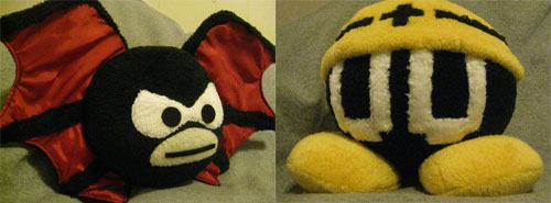 For the Mega Man fan wanting a softer approach to robot baddies, Etsy seller RabbitHollow has a plush Bomb Bat available for… B.. Bomb Bat? BOMB BAT?? It is called a BATTON you ignorant unwashed #$*&@#!!!… *huff* *huff* Ok… Yes, you can buy the Batton plush. There is also a Metool METALL available as well. I feel faint.