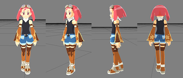 Oh well, grades aside, here is Aero’s completed 3D model, which ought to give us a pretty good idea how other models in the game are going to look. Seems to be something of a cel-shaded-esque style, though a bit crisper compared to the models from the PSX titles. Personally I’m glad they kept the expressive face textures as opposed to trying to model the entire face.