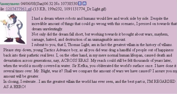 Some of you may have seen the above image passed around. It’s amusing, as well as interesting, in that it essentially takes what we all know of Dr. Thomas Light, and puts a unique and entertaining spin on it.