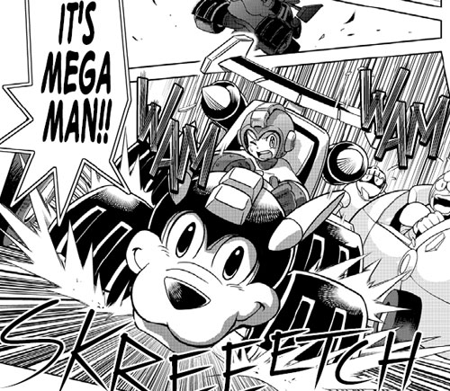 Even more telling of this is the focus of the main eight robot masters from MM3, who all really show off unique powers that are reminiscent of the creative take Ariga gives them. I’m also a bit relieved that the whole “yelling out your move” trend that was in the earlier Megamix books is less prominent in this as the robot masters fight against Mega Man.