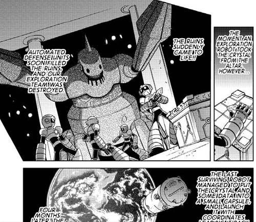 The first chapter “Asteroid Blues” is a take on the storyline of Mega Man 3, a game I personally hold really close to my history as a gamer. It touches on the games main storyline where Dr. Light and Dr. Wily join forces to create a robot named “Gamma.” It’s an interesting take because it not just takes the concept, but adds to it in a very epic continuation. It’s actually more of a prequel to the Megamix series if you’re going to try to figure out continuity.