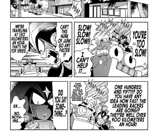 This story focuses mainly on Battle & Chase (a very rare game unless you count the inclusion in the Mega Man X Collection) and the Mega Man 7 robots, which honestly does not fit except for the fact that Turbo Man plays a tremendous role in the chapter. I feel as though things are a little tacked on just for the sake of including Battle & Chase elements, like “Look, there’s Guts Man” “Look, there’s Guts Man in his car.” It’s not terrible, but it’s a little forced at times. Nevertheless I can see why it was added as it’s only to add more comedic value to the storyline.
