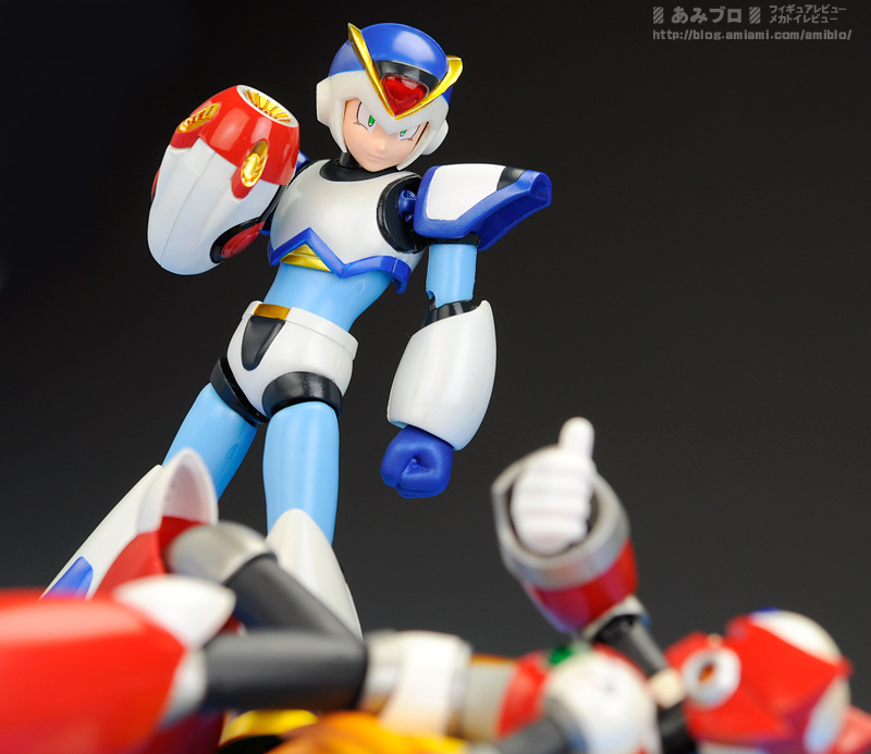 Figure and hobby vendor AmiAmi has a review post up of Bandai’s D-Arts Full Armor Rockman X figure. By now you probably know more or less all there is to know about this latest in Bandai’s Rockman X series, but the images of the figure are worth seeing. Not only do they demonstrate its great poseability, they make some interesting use of the figure’s accessory parts, as well as other figures (like recreating a fateful moment with Zero).