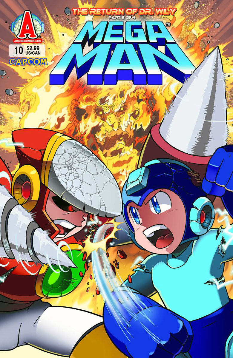 Previously, we brought you a brief glimpse of the cover for Archie’s Mega Man #10, which gave us an idea of what to expect from the second part of their adaptation of Mega Man 2. And thanks to Merricks and Comics Continuum, we have a larger image of the cover, as well as a solicitation!