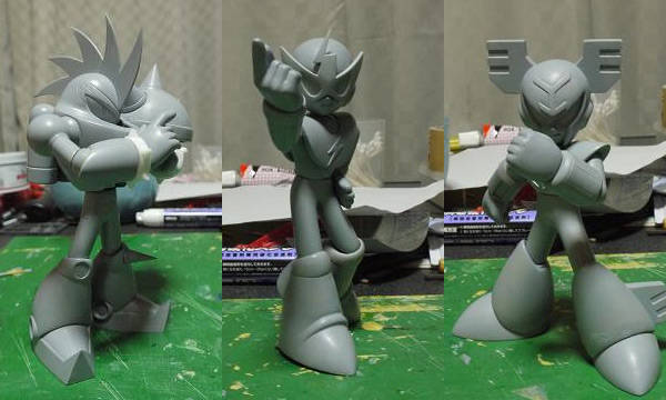 Hobby Rock is highlighting a lot of the fan-made Rockman models and figures to be showcased at the upcoming Wonder Festival, but they’re far from the only ones who will have wares to show off. A few that I’ve taken a real shine to lately are the above garage figurines of Elec Man, Tornado Man, and Punk by Kurukuru Mecha Atelier. I really enjoy the attention to detail and proportions, and characters like these have a long shot of being picked up by professional model and kit companies. Sadly, like many garage kits, painting is probably required!