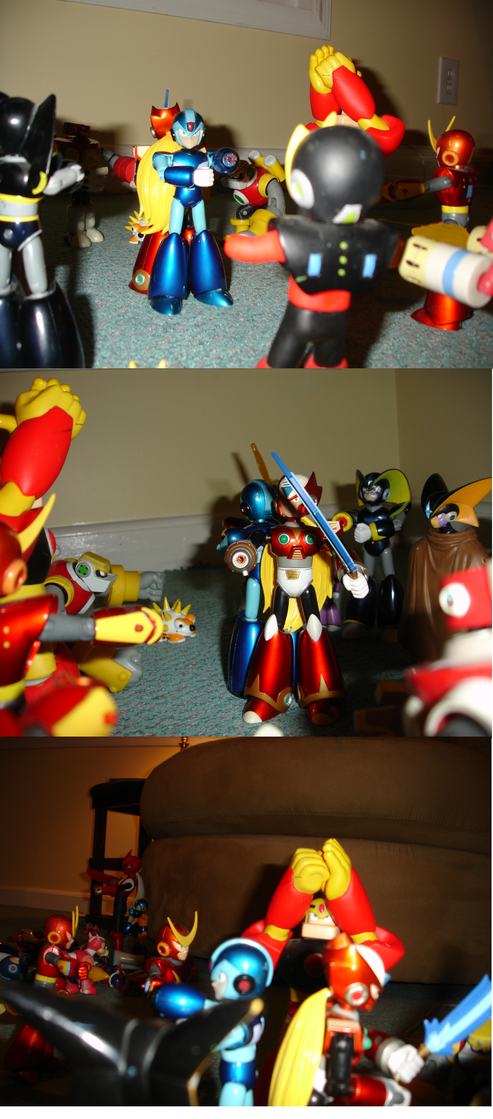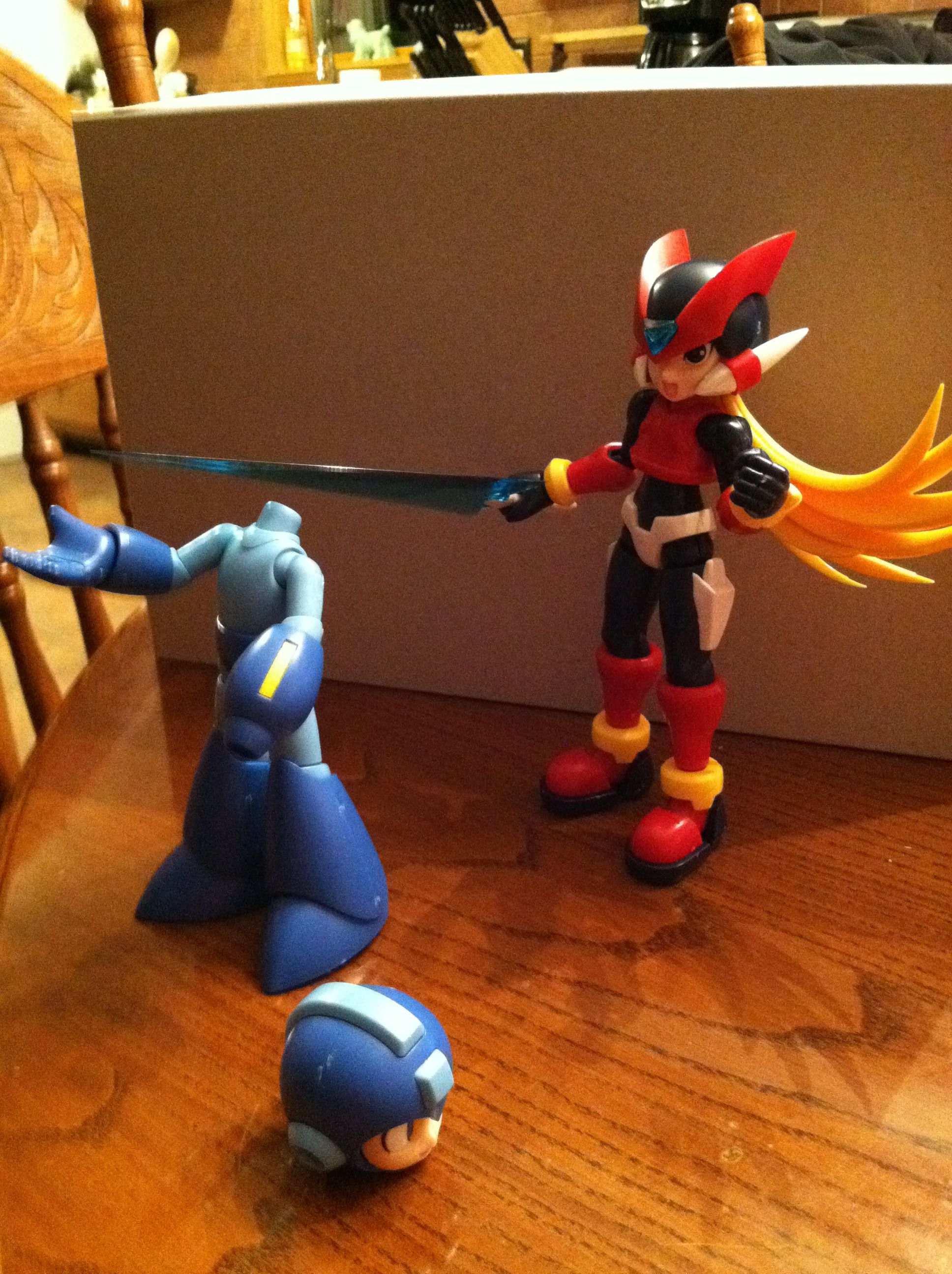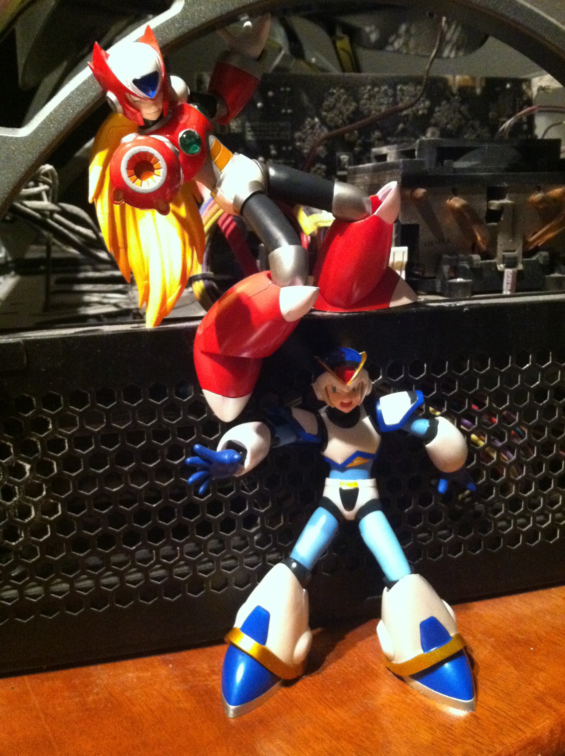 Gallantly taking reign on my dresser are our favorite reploid trio: X, Zero and… Zero, riding on their majestic steeds claiming their place in my household. Rest assured, however, they are willing to spare a place for one OTHER red-clad blondie.
