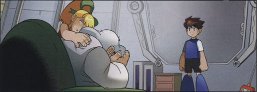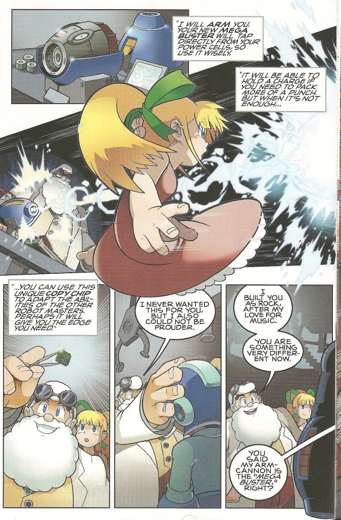 The Mega Man comic team uses it in a way that manages not to be cliche; they demonstrate Rock’s physical capabilities, but also show his mental uncertainty, ensuring that there will be a smooth transition from reluctant, untrained warrior to the courageous Blue Bomber that takes down Wily.