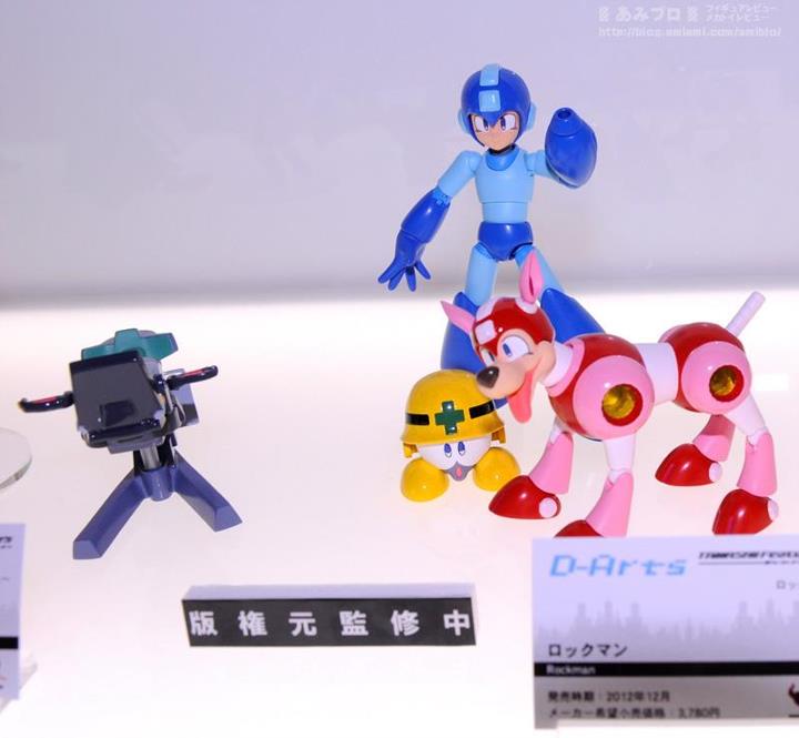 That didnt take long! As expected, here is our first look at Bandai’s D-Arts Mega Man, straight from Tamashii Nations Vol. 4. And as you can see, it appears to come well featured, what with Rush and a Metall!