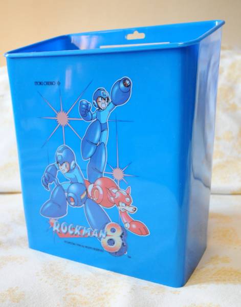 Here is a Rockman 8 themed trash bin up for auction on Yahoo JP. It’s by Itoki Co., the same company that produced other Rockman 8 themed children’s furniture – which if you’ll recall was pretty pricy. Can’t say for sure how much this plastic bin was originally, but thankfully it’s up for bidding at a mere ¥100.
