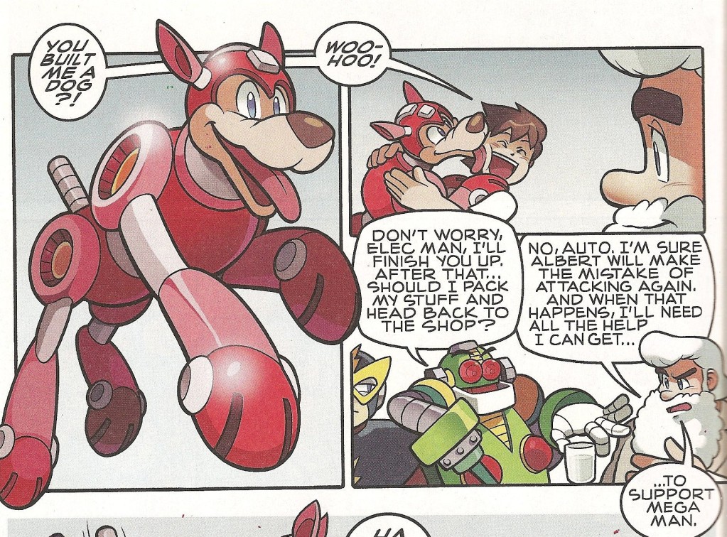 This issue was about resolution, and well-intentioned resolution. It established that even though Mega Man is still the front man, Dr. Light has a team of backup helpers in place should he ever require assistance. And that’s a good thing; a warrior is only as good as his support network. Wily was sent packing, and his six-month grand scheme, although it worked for a time, was ruined because even though Dr. Light doesn’t play the long game, he does hedge his bets and keep backup measures in place.