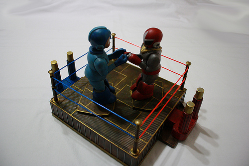 So in the spirit of characters beating the stuffing out of each other, we at The Mega Man Network would like to give focus to KodyKoala.com’s Rock’em Sock’em Robots custom, featuring Mega Man and Proto Man. This impressive work allows one to recreate the epic battles of Mega Man 3… except in a boxing ring, and with a lot more face punching.