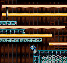Gemini and Spark both end with the hardest platforming segments in the game. That leaves Magnet, Top, and Needle as the easiest stages to start with, but Needle Man is among the hardest bosses, and even an easy vanishing block section can get players stuck for a while. Top is probably the best starting stage, but that depends on how quickly a player can learn to deal with the spinning platforms at the end.