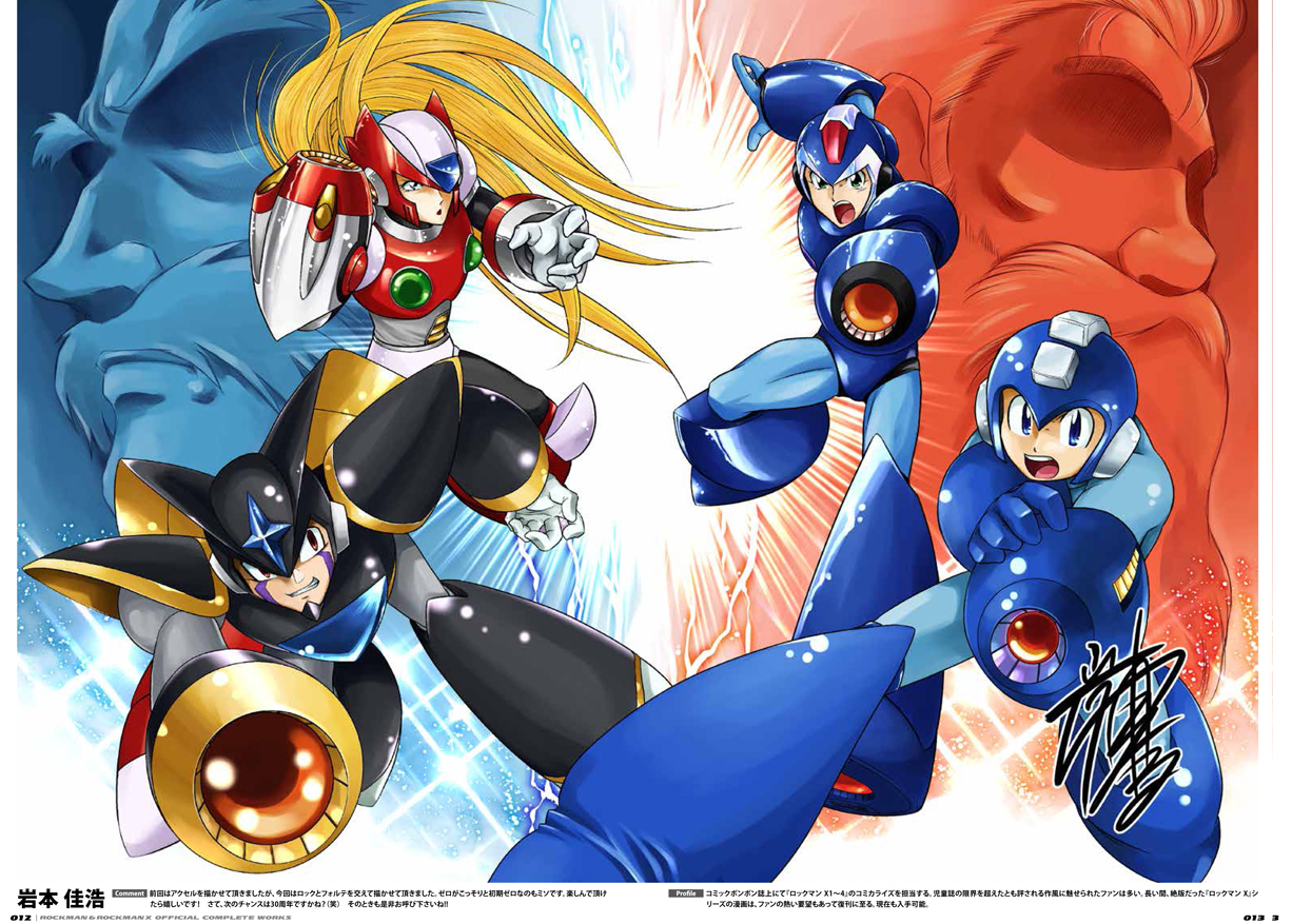Read on to see Hitoshi Ariga (Mega Man Megamix and Mega Man Gigamix) and Yoshihiro Iwamoto’s (Rockman X) respective pieces. Thanks for the tip, Oakie620!