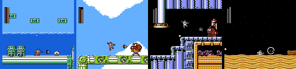 Bright is too strong in the right hands, but a player has to know where to use it and slide constantly to take full advantage of it, while the less experienced will likely move slower and get tripped up on enemies like Mets and Shield Attackers that still get in the way when not moving. It works well as a crutch (and reward, given Bright Man’s difficulty) for new players. While the similarity between Drill, Ring, and Dust along with two full-screen attacks hurts the variety compared to previous games, the Pharaoh Shot, improved balance on Rush’s forms, and lack of an outright worthless weapon make this selection a decent one. The secret items could have been better, but they’re at least fun to mess with, and the Wily stages may yet offer them a chance to shine.
