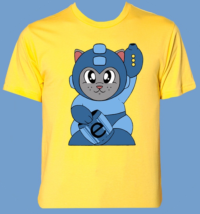 Okay, technically it’s Mega Neko, a new Mega Man-inspired t-shirt now available for $24.99 over at Pengew Apparel. Inspired by the Japanese Maneki-neko statue, which is said to bring its owners good luck, the description reads “This little kitten will bring you good luck. Wait, not just good luck. MEGA GOOD LUCK! Also, a few E-Tanks too.”