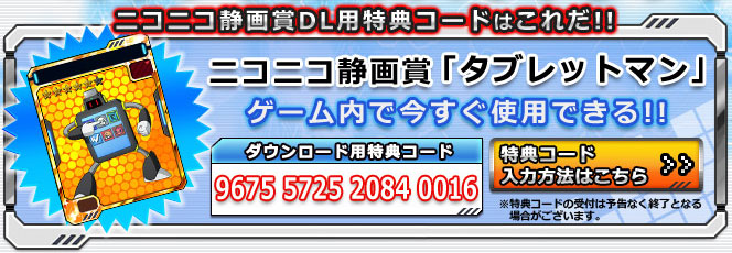 Hey players of Rockman Xover, there’s a new special edition Battle Memory to grab, and this time you don’t even need to buy a product to get it! Just use the above code, and you can get Tablet Man’s Battle Memory. If you’ll recall, Tablet Man is one of the runner up winners in Xover‘s boss character contest.