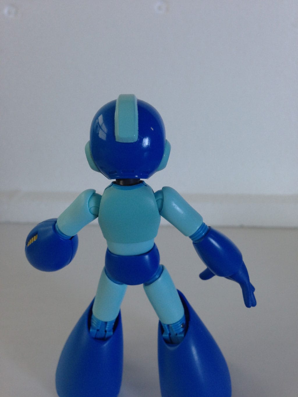 In these two shots, you get a look at some of the other joints from behind the figure, as well as some of the unpainted detailing (i.e. the vents) in the back of Mega Man’s helmet. Not seen are some slight areas where Mega Man’s shoulders can move slightly, giving him some vertical movement in his arms. The chest offers a bit of articulation as well, though it’s better suited for a horizontal swivel than any sort of gut-crunching.