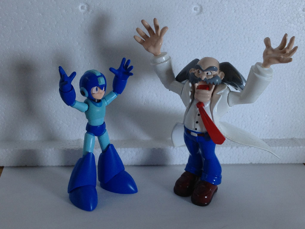 For those of you wondering how he looks with other Mega Man figures of the past, here’s a quick look at him with Jazwares’ 6″ Mega Man, Jazwares’ 12″ Mega Man, Bandai’s animated series Mega Man, Toy Biz’s Marvel vs. Capcom Hyper Mega Man, and a Mega Man/Rush figure from Japan. It probably goes without saying, but this one is undoubtedly the best of the bunch. I’d love to compare him with the Kotobukiya Mega Man, but guess what I don’t have.