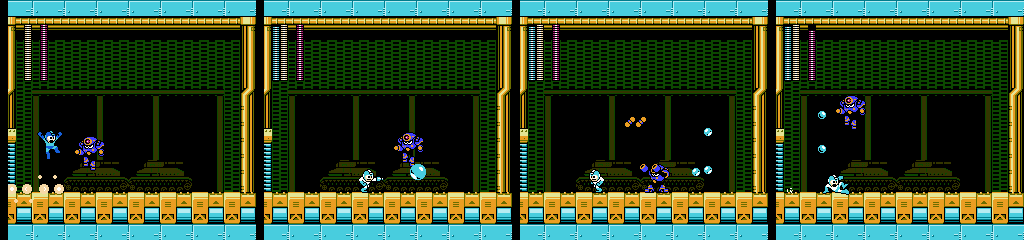 While none of these fights are quite as dull as Dust Man or Toad Man, nearly all of them are much too easy compared to the previous games. Some of them would have been perfectly acceptable in the role filled by Magnet Man or Top Man, but Crystal Man is the only one that can put up a respectable fight, with Gravity Man and Charge Man as distant seconds.