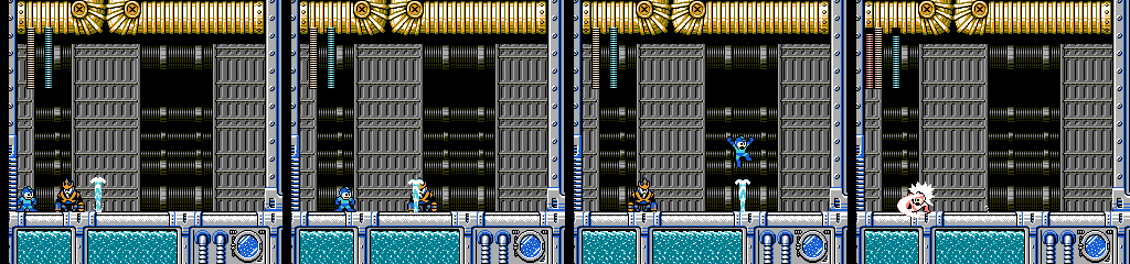 Also, for the first time, every single one of these fights on a flat surface. Comparing the quality to Mega Man 4, it’s simply a matter of whether you’d prefer the fights easy or awkward. Personally, I’ll take Pharaoh Man and Ring Man over this bunch.