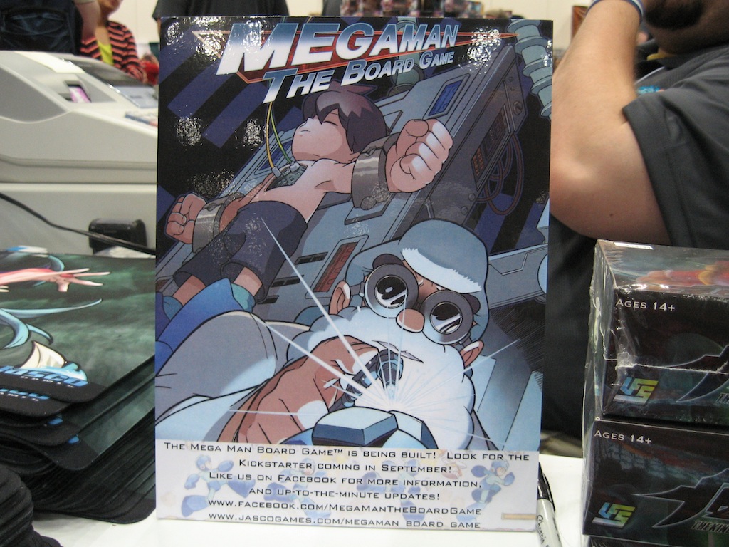 A Kickstarter campaign is planned to begin in September sometime. This is not simply to fund the game – it will be ready to go and Jasco has the funds to produce a basic version of it. Therefore, the aim of the Kickstarter will be to gauge fan interest in the board game, and raise funds to refine the game’s quality and provide additional features that would be too expensive to include normally. One example of how funds could be used would be creating colored miniatures of the player characters and Robot Masters in different poses. A couple figure sculpts were present at the con. But regardless of how the Kickstarter goes, a complete product will be released nonetheless.
