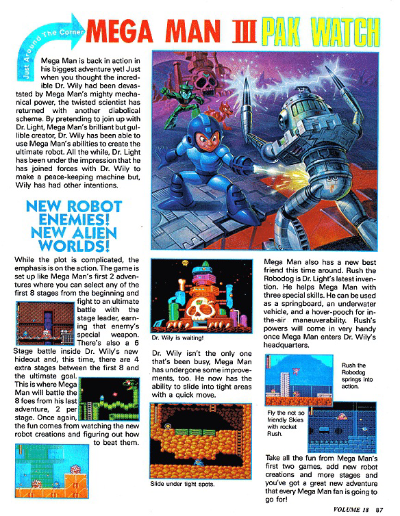 About a year after Mega Man 2 had graced the cover of Nintendo Power magazine, we got our first look at Mega Man 3 from the Summer Consumer Electronics Show, or CES, which was the big biannual event where new games were shown off before the Electronic Entertainment Expo was founded.