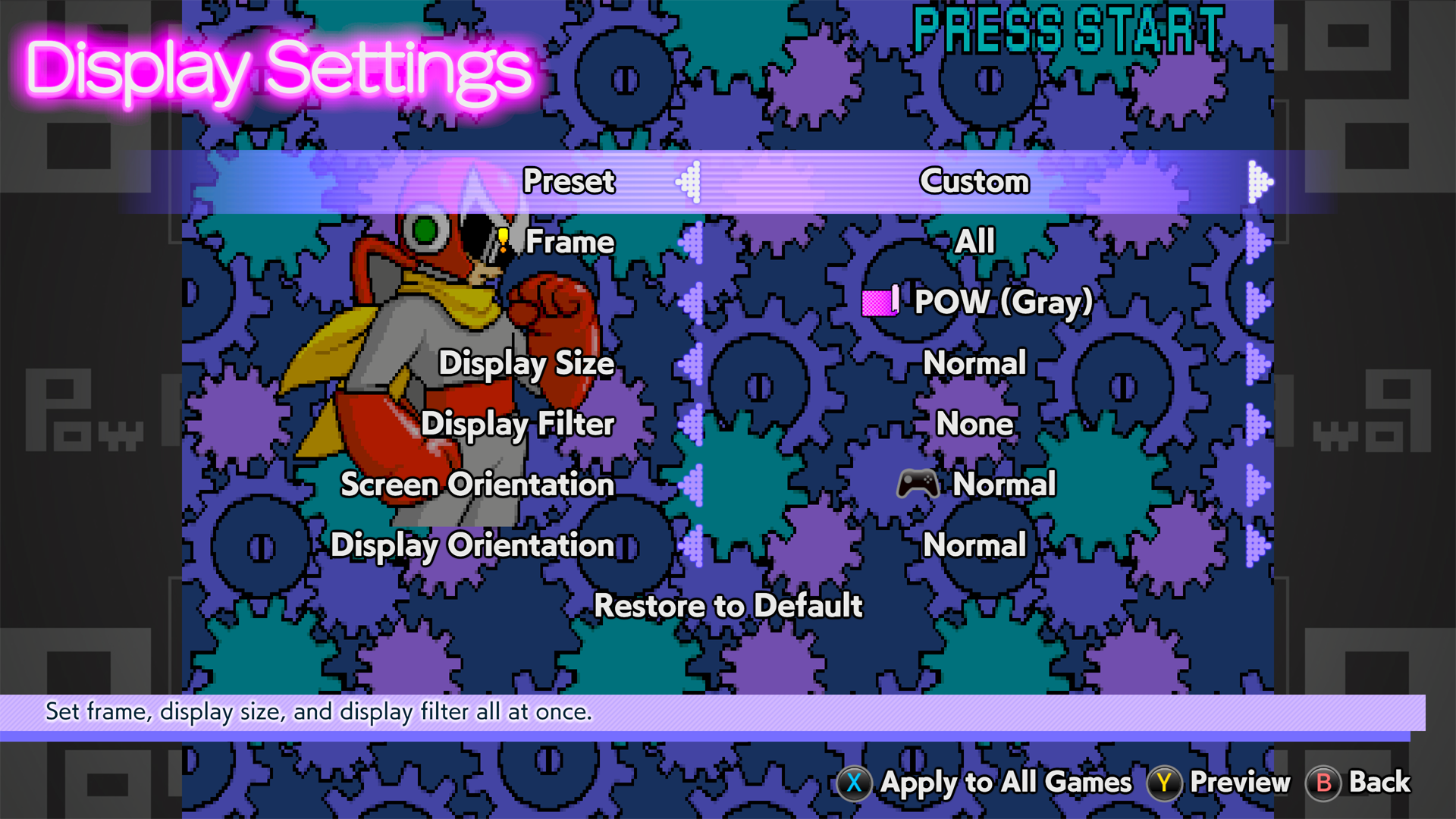 Sadly, multiplayer for these two titles is local only, though there are online leaderboards. There are also numerous other options you might expect from a collection such as this, including screen filters, frames, resolution, detailed manuals, and even a faux arcade cabinet to simulate playing them in an actual arcade. Oh, and you can choose between the Japanese and English versions of the ROMs, too, so you can totally get your Rock on, man!