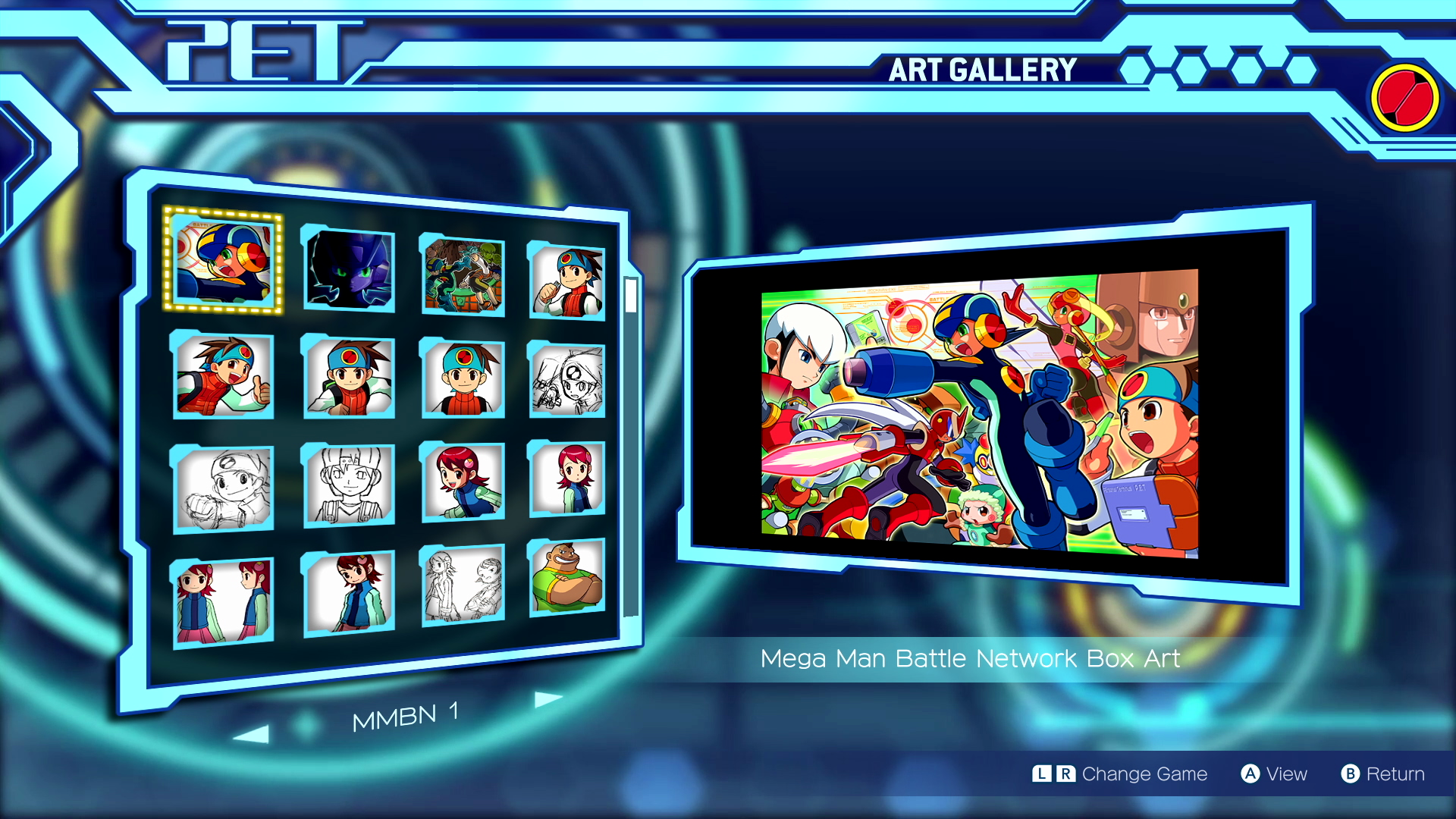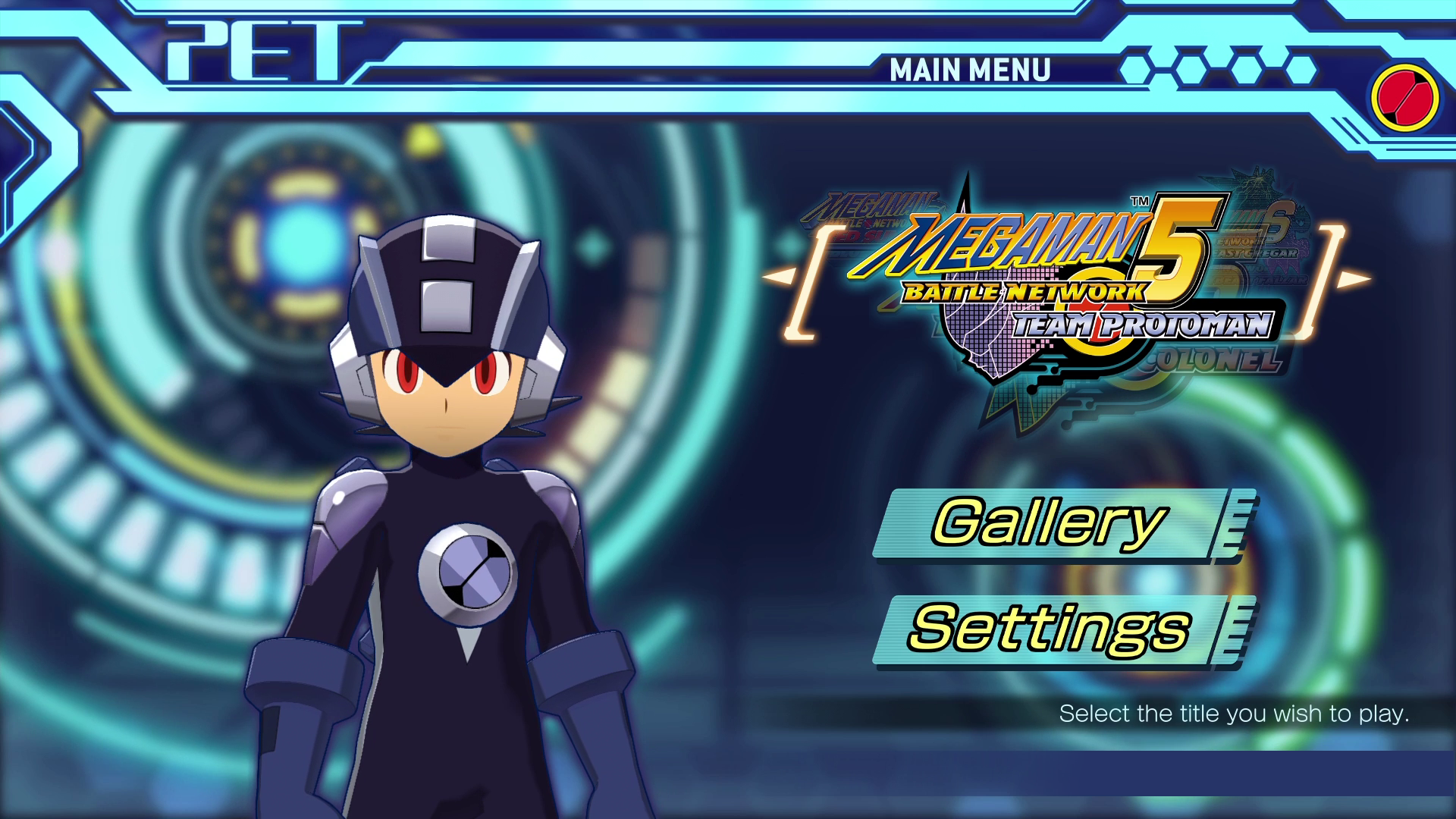 Speaking of jacking in, the collection’s main menu treats whatever screen you’re playing on as one big PET, as MegaMan.EXE himself appears to accompany you on your journey. Andrew Francis reprises his role as the Blue Bomber from MegaMan NT Warrior, and you can make him speak whenever you like by press the L bumper/button on your controller. He even gets a few extra lines if you manage to get the downloadable content which reskins him as Hub Style (Vol. 1) or Dark MegaMan (Vol. 2), and has some lines he’ll deliver depending on the time of day, such as asking if you’re getting tired when it’s late at night.