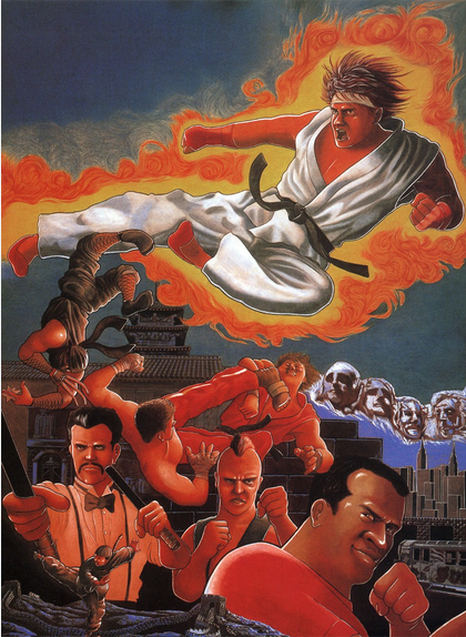 Somewhere around this time, a young martial artist named Ryu would travel the global tournament circuit, and defeat the World Warrior champion Sagat to become known as the best Street Fighter in the world. In 1989, Mike Haggar had made it big as a titan of professional wrestling in Saturday Night Slam Masters, and rode this popularity to become the newly-elected mayor of Metro City. Unfortunately, he’s informed soon after of his daughter’s kidnapping, and recruits her boyfriend Cody and Guy to join his vigilante mission to clean up the streets and put the Mad Gear Gang down in Final Fight. And since these two actually do exist in the same universe already, several of their paths will cross throughout the Street Fighter Alpha and other series, including Sakura’s part in Rival Schools.