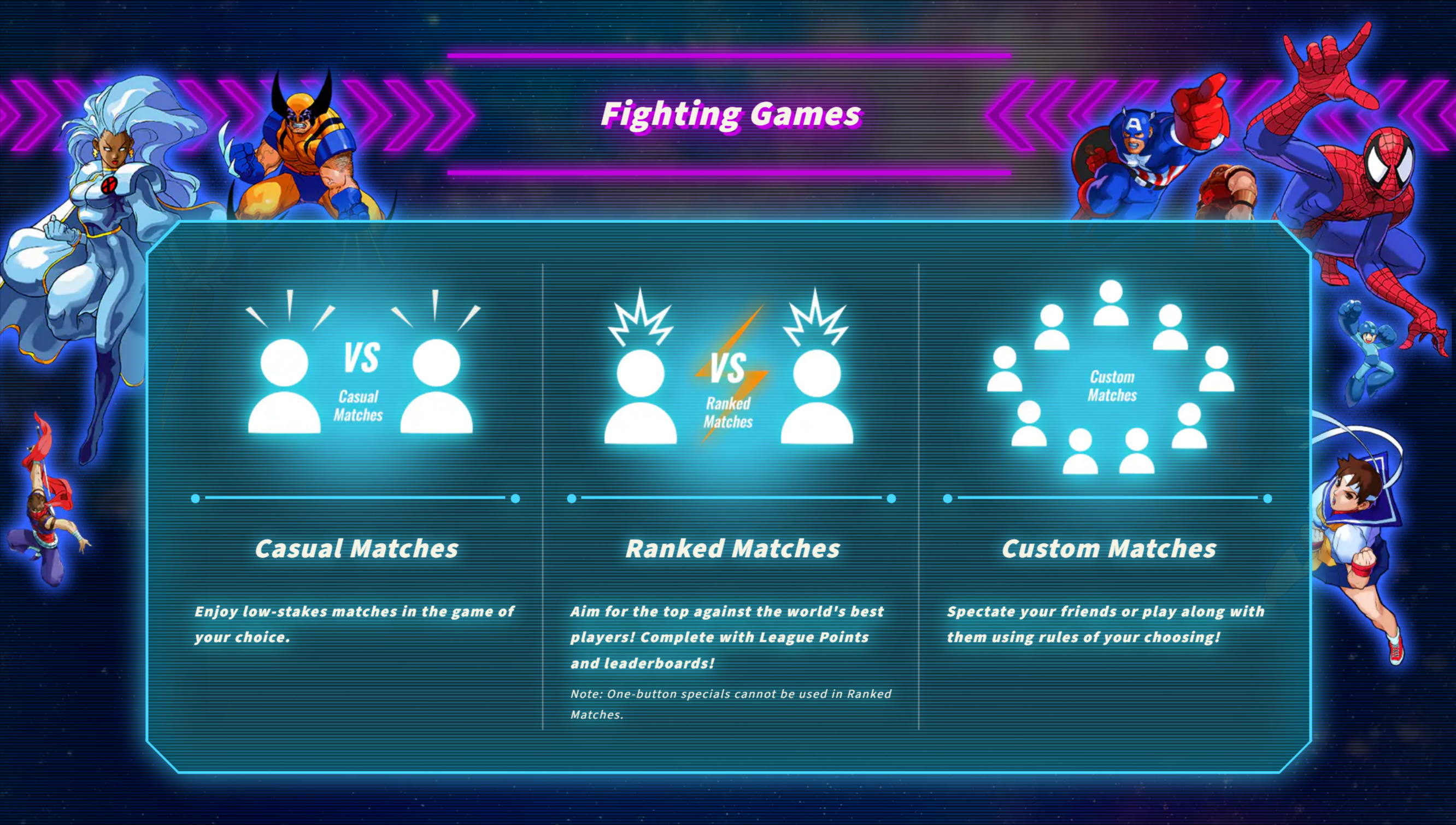 - Battle It Out Online – All of the fighting games in the collection will have online ranked, casual, and lobby matches unlocked for players to showcase their abilities with friends, family, and other players from around the world!