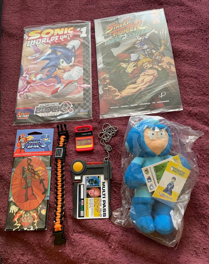 At the top, we have some variants of a Street Fighter comic and the Sonic: Worlds Unite Battles book from the big SEGA/Capcom crossover that mainly focused on Sonic and Mega Man, back in the Archie days. I believe both of these came from some sort of loot crate-type deals. You can see a bit of Sigma in the background on the left there.