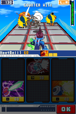 This unique action RPG blends exploration with fast-paced battles, as players travel between the real world and virtual Wave World. Developed by the team behind the popular Mega Man Battle Network® series, the game marks the start of a new era for Mega Man, which celebrates his 20th anniversary this year. In Mega Man Star Force, players explore towns and interact with people in the real world while the action-packed battles take place in the virtual dimension. Enemy encounters take place on a three by five grid, where players use a portfolio of Battle Cards that each have distinct attributes and attack powers. As the story progresses, players will acquire additional cards and can build an arsenal that reflects their personal strategy. Players can also connect wirelessly via the Nintendo Wi-Fi connection with friends to create a “Brother Band” network, where they can share cards and status upgrades.